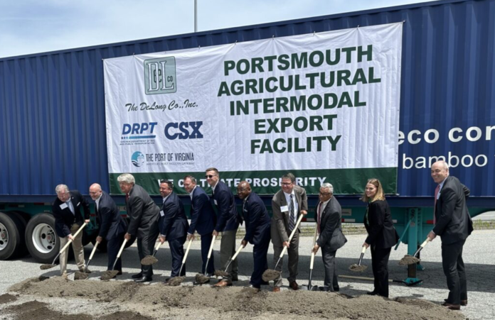 The DeLong Co., Inc., in collaboration with the Port of Virginia, CSX, the Virginia Department of Rail and Public Transportation, and the City of Portsmouth, has broken ground on a new agricultural intermodal export facility in Portsmouth, Virginia. The groundbreaking ceremony on May 29 included representatives from local, state, and federal government, including U.S. Representative Bobby Scott and Virginia Secretaries Matt Lohr and Shep Miller.